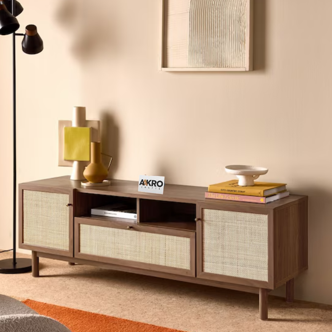Transform your entertainment space with the Aurino Rattan TV Unit from Aakrocrafts—a thoughtful union of style, storage, and artisanal elegance.