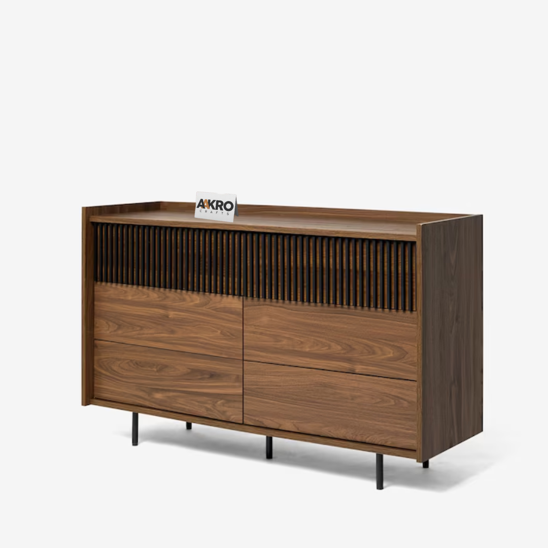 The Axon Chest features six spacious drawers, each crafted for smooth operation and ample capacity—perfect for organizing clothing, linens, and everyday essentials. Its streamlined silhouette and rich dark walnut finish bring warmth and depth to any interior, harmonizing effortlessly with contemporary or classic décor.