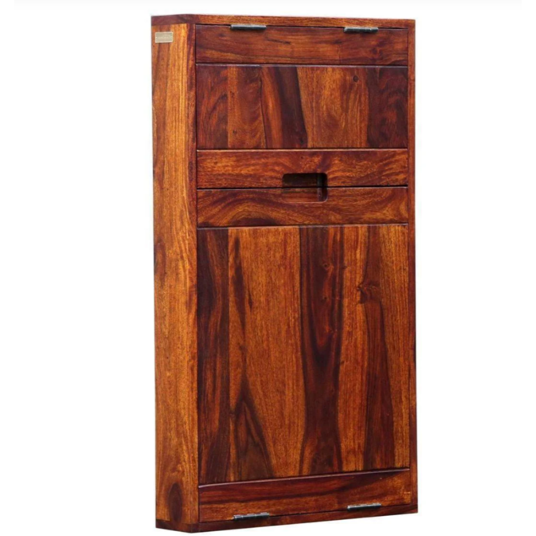 Discover smart functionality and elegant design with the Bellvora Wooden Wall Mount Writing Table and 2 Door Wall Shelves by Aakrocrafts. Crafted in solid Sheesham wood, this innovative piece is perfect for maximizing your vertical space in living rooms, home offices, or bedrooms.