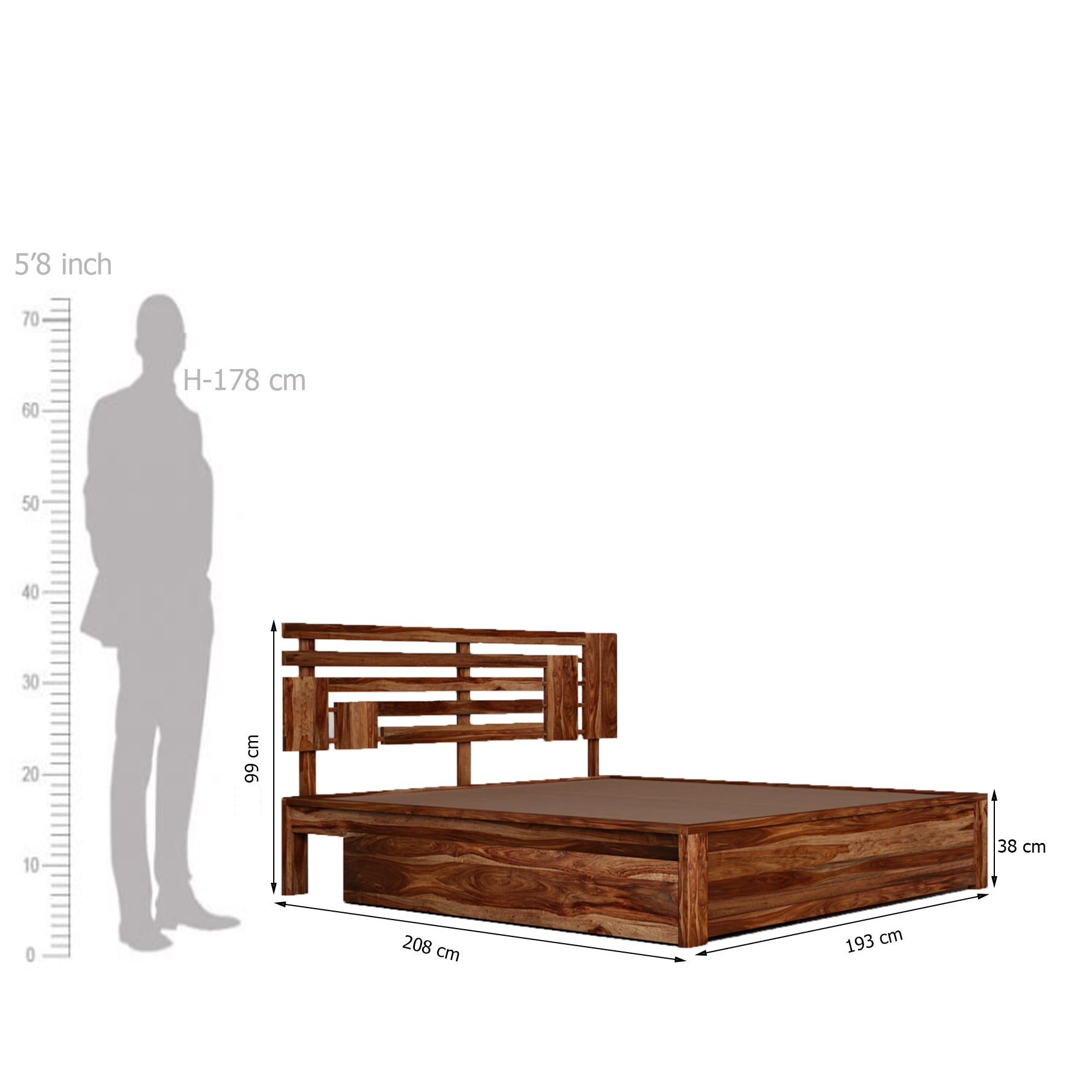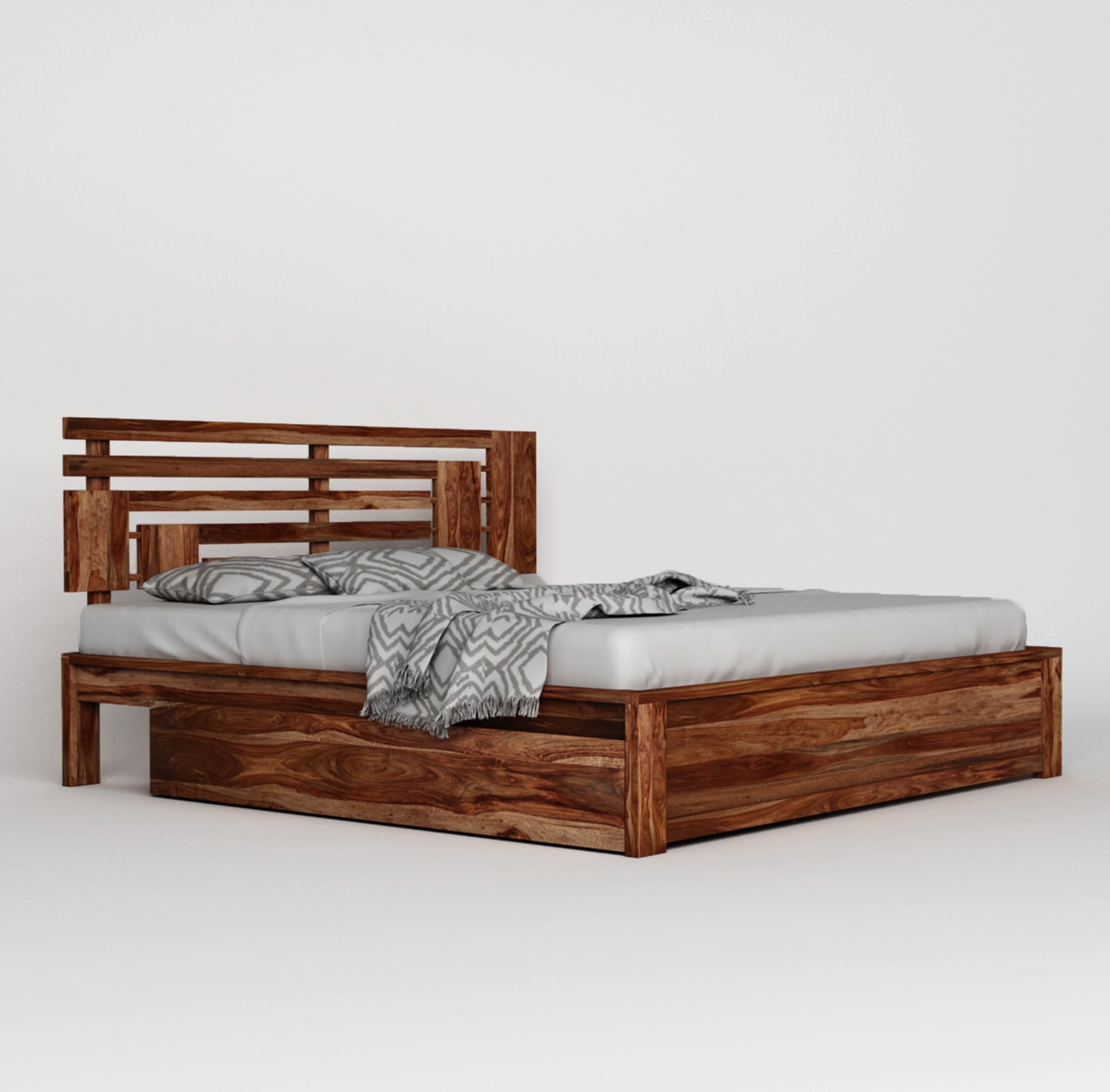 Durable Construction: Crafted from solid wood (such as Sheesham or teak) or high-quality engineered wood, ensuring the longevity, strength, and stability expected in a premium bed frame.