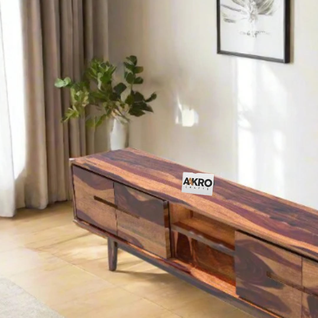 Elevate your entertainment space with the Homlen Sheesham Wood TV Cabinet by Aakrocrafts, designed to provide both versatile storage and elegant style. Crafted from premium Sheesham wood, this cabinet combines ample organization with the natural beauty of solid wood.