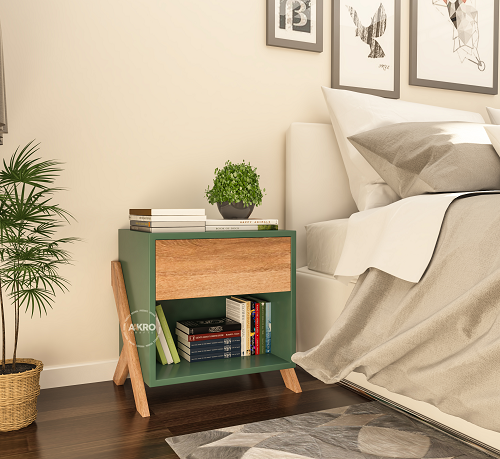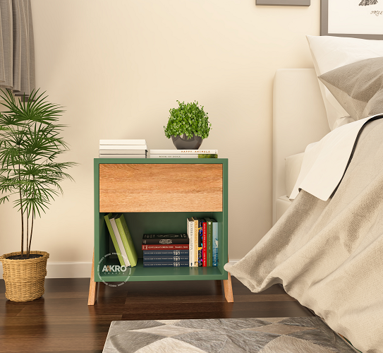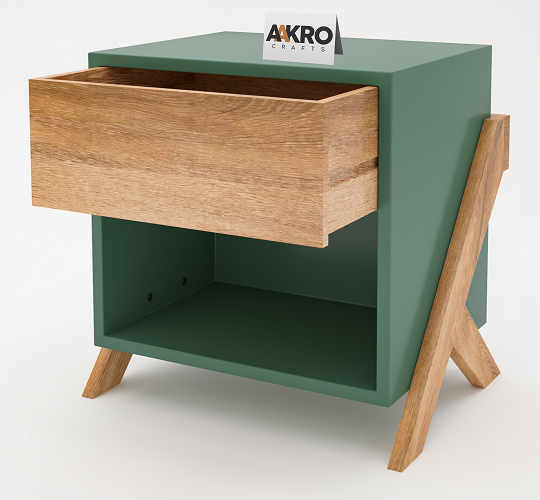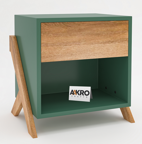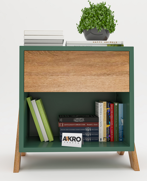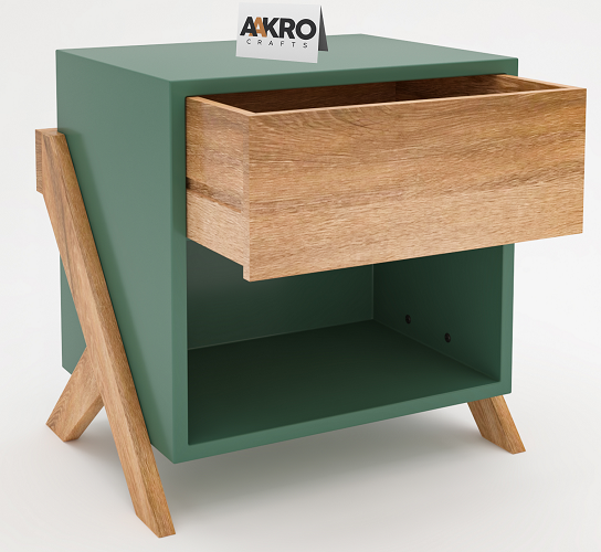 Madison Mango Wood Bedside Table with Drawer and Shelf Storage - (Forest Green)