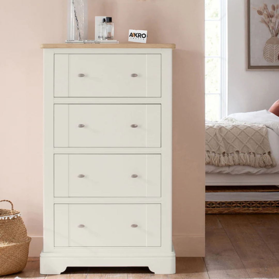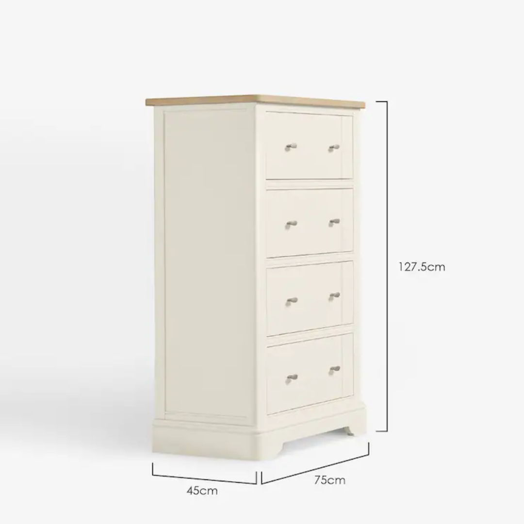 Spacious vertical design: Standing at 127.5cm in height, 75cm in width, and 45cm in depth, the Merivo chest offers four ample drawers, providing generous storage without taking up excessive floor space.