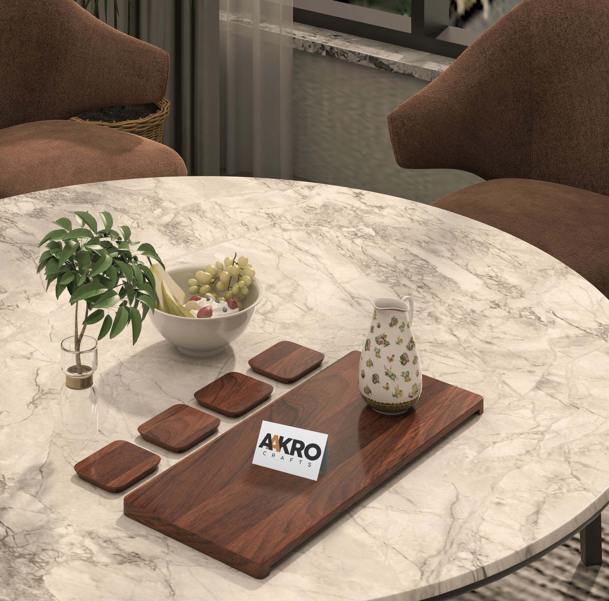 Bring timeless elegance to your kitchen or living space with the Aakro Crafts Sheesham Wood Tray. This rectangular serving tray is handcrafted using premium grade sheesham wood, known for its rich natural patterns and exceptional strength. Featuring a distinct geometric carved design, the tray is perfect for adding a rustic-modern touch to your home. Use it as a tea tray, breakfast tray, or decorative organiser on your dining table, coffee table or kitchen counter. With dimensions of 43 cm x 19 cm x 2.5 cm, this tray is ideal for daily use—whether you're hosting guests or serving a cozy morning tea. The raised edges prevent spillage while the polished surface is easy to clean and maintain. Why Aakro Crafts? We are dedicated to preserving Indian woodworking craftsmanship. Each tray is handcrafted with care by skilled artisans and made to last generations. Our mission is to bring the warmth of real wood into homes across the globe. Style meets function – bring home art you can use.