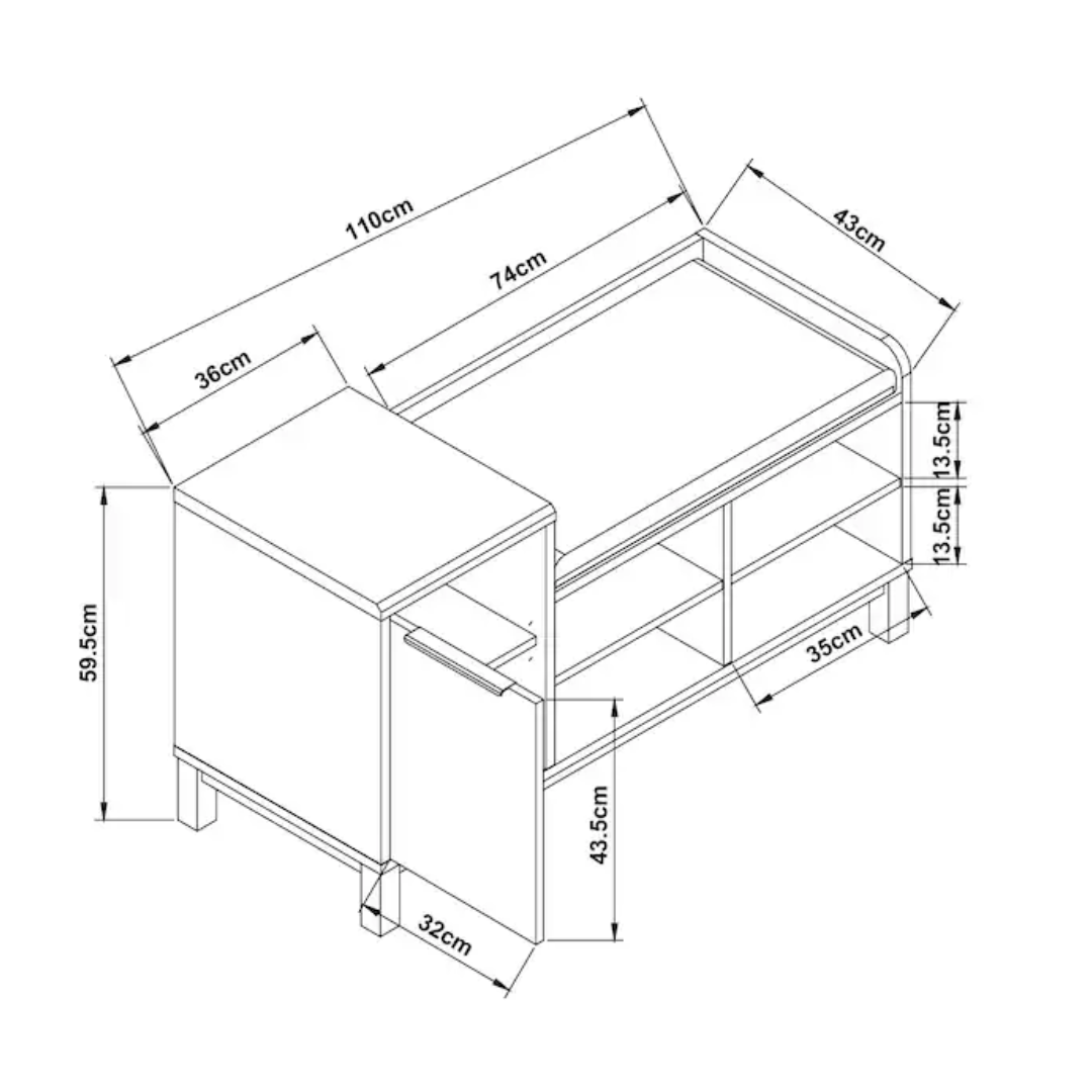Smart proportions: With a height of 60cm, width of 110cm, and depth of 47cm, the Napvilla bench provides ample space for seating and versatile shoe storage without crowding your hallway.