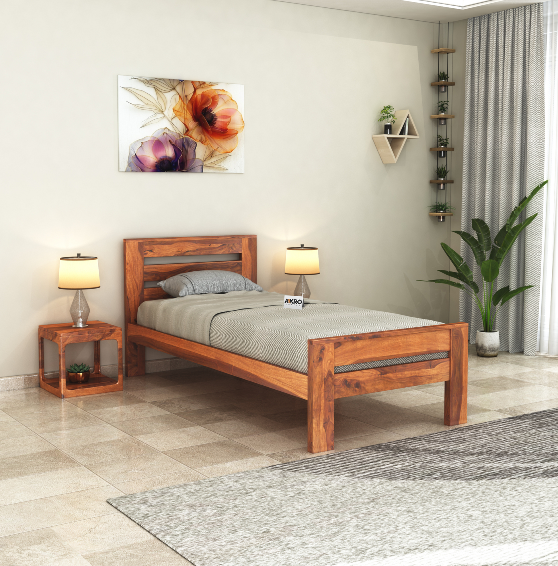 AAKROCRAFTS This Wooden Bed without storage is made up of solid sheesham wood and ingenious design of single bed in good finish will refresh your interiors with its plush look and compliments any existing décor. The single bed for bedroom can also be said as palang Single bed wooden char pai bed. Elegant and vintage design of the wooden bed makes it well match with many home decoration. The bed furniture for bedroom looks very ravishing and admiring.