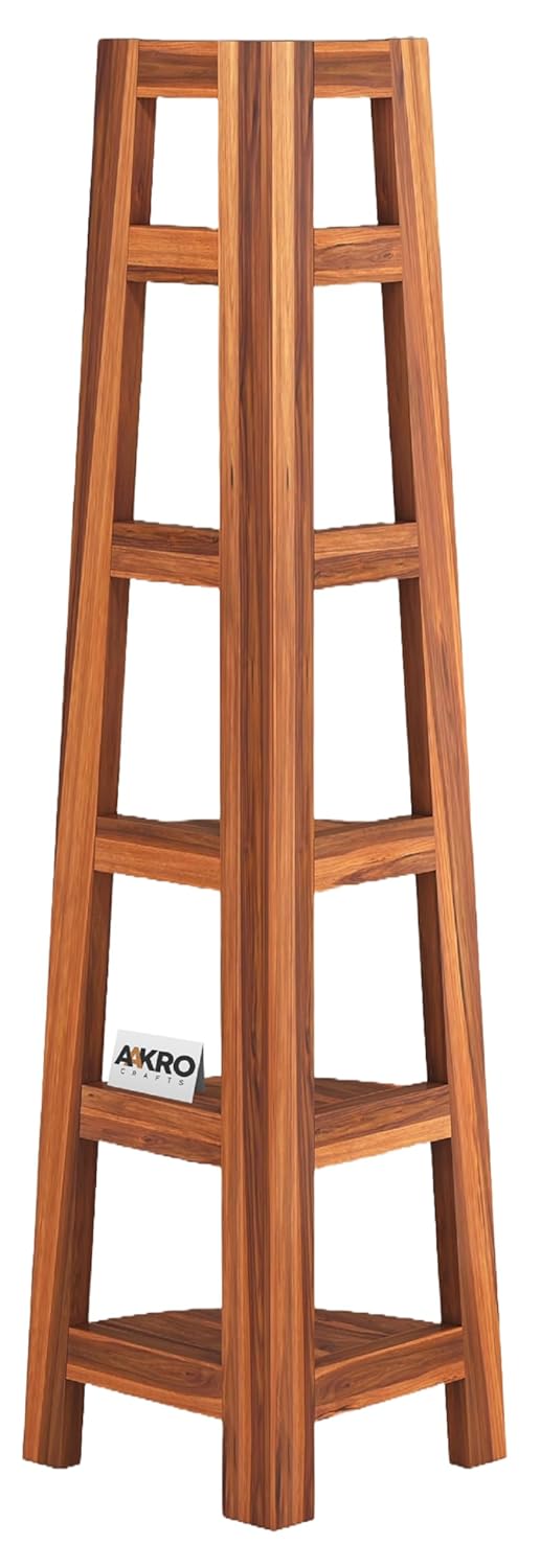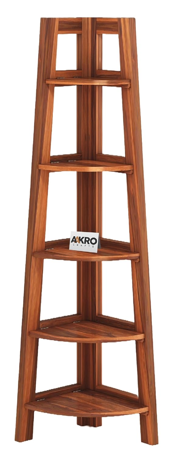 Elena Sheesham Wood 5 Tier Corner Bookshelf / Bookcase Display Unit Honey Finish