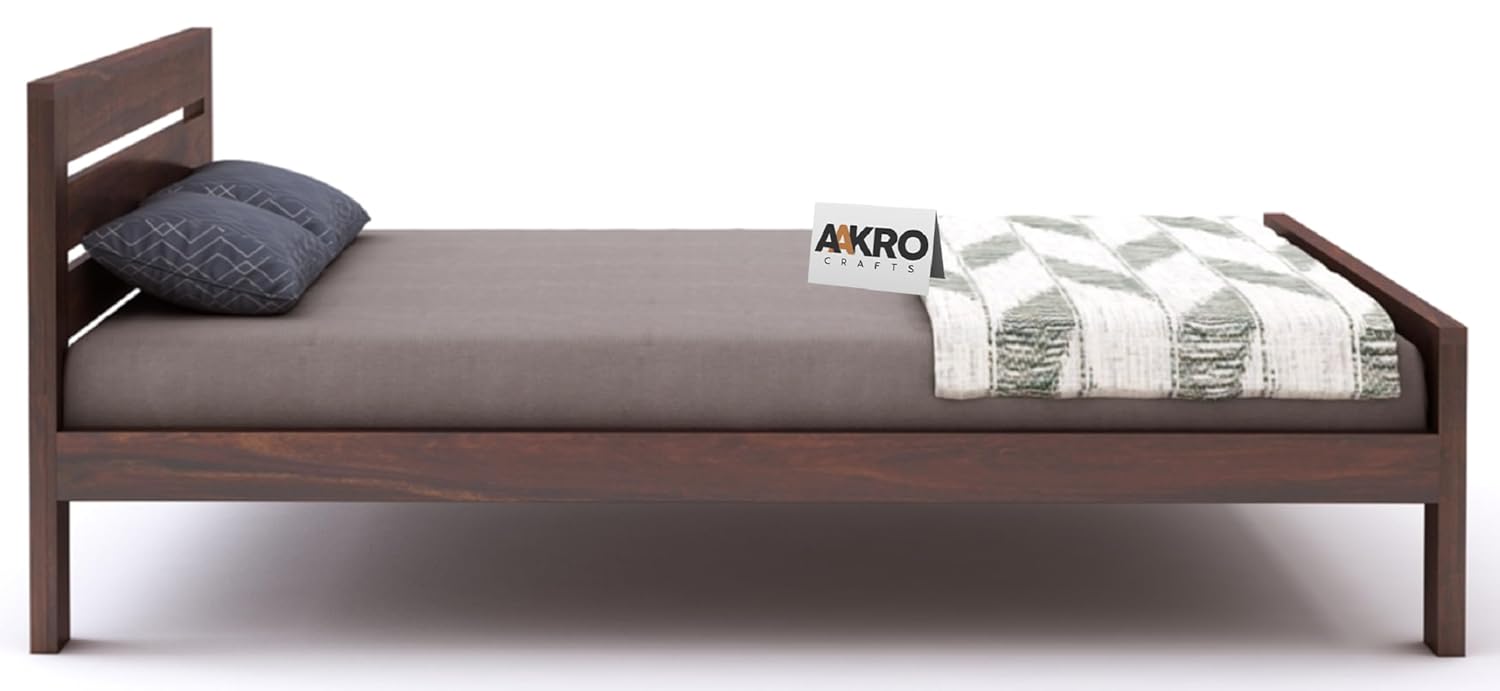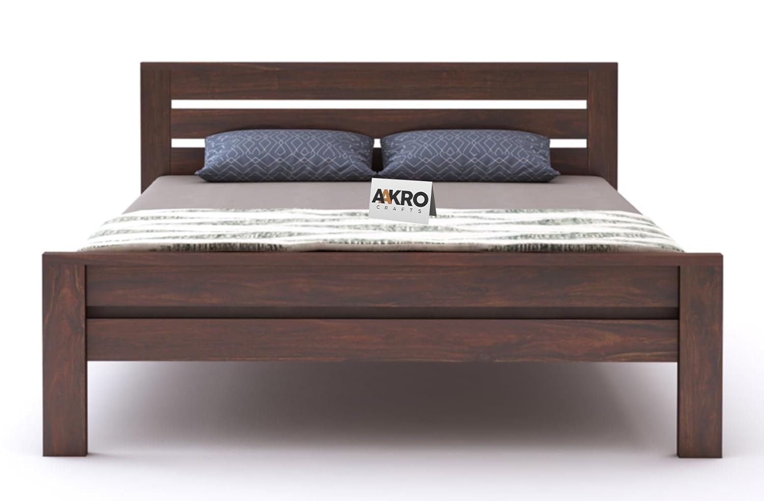 AAKROCRAFTS This Wooden Bed with top opening Without Storage is made up of Solid wood and ingenious design of King Size Bed in walnut finish will refresh your interiors with its plush look and compliments any existing décor. Top opening storage makes it perfect to store your valuables perfectly. The Wooden King Size Double Bed Furniture for Home has an ideal that can be placed easily in your bedroom. The Palang Bed furniture is made of Solid Wood which ensures durability of the Solid Wood Bed.