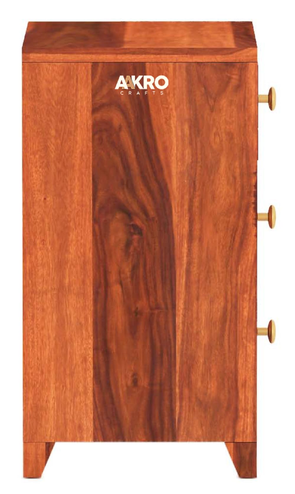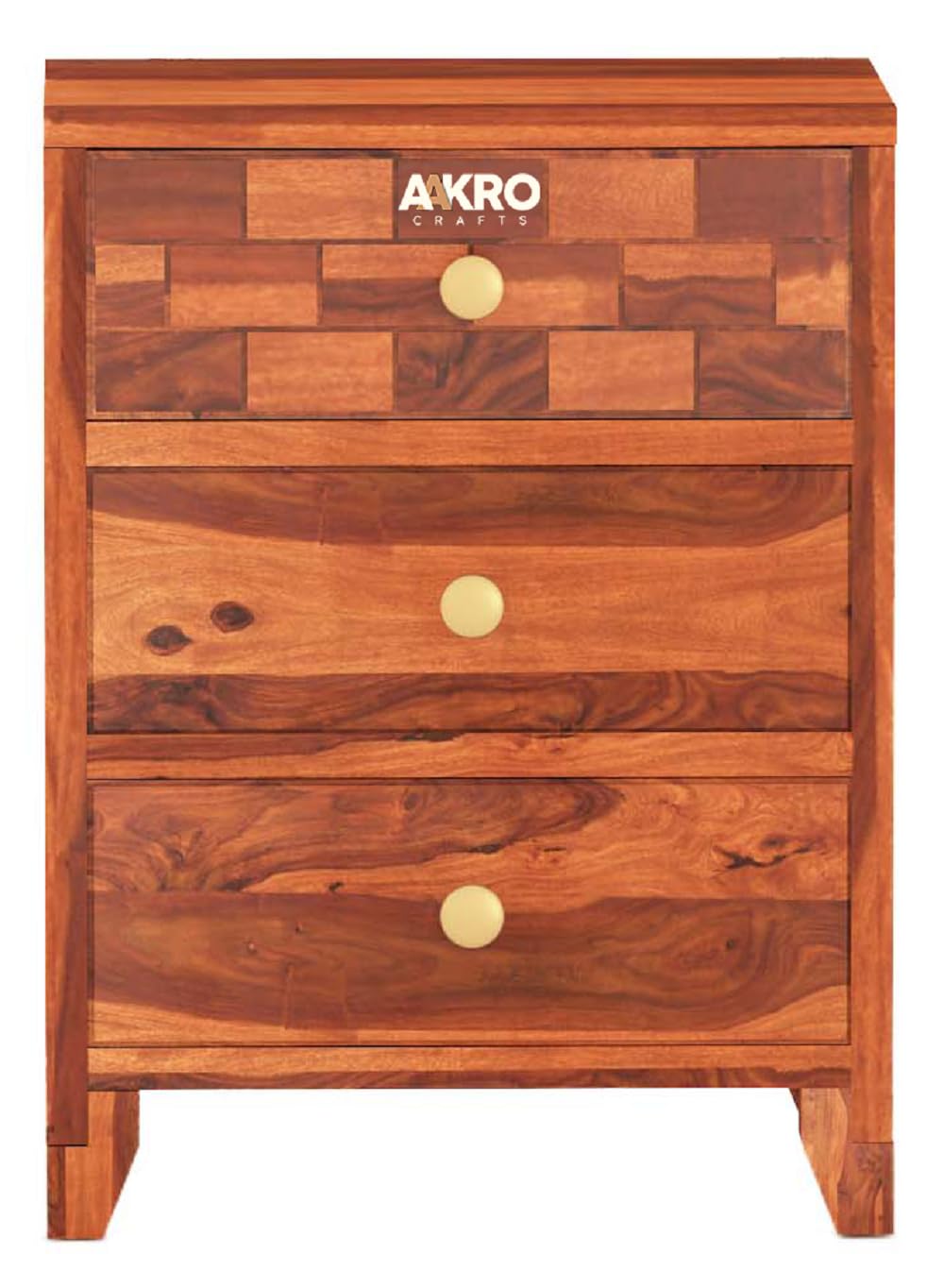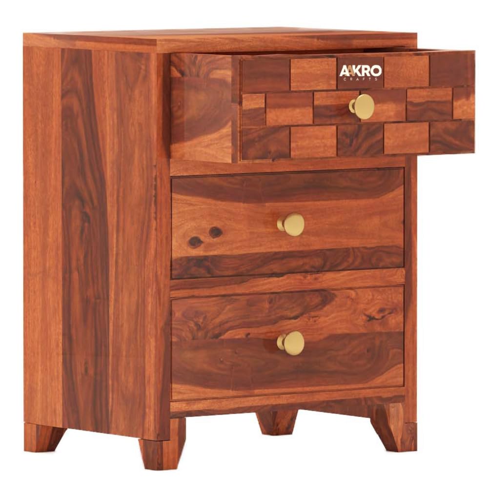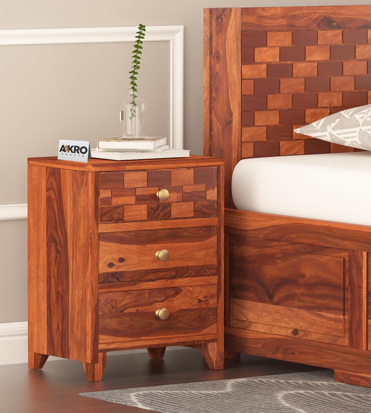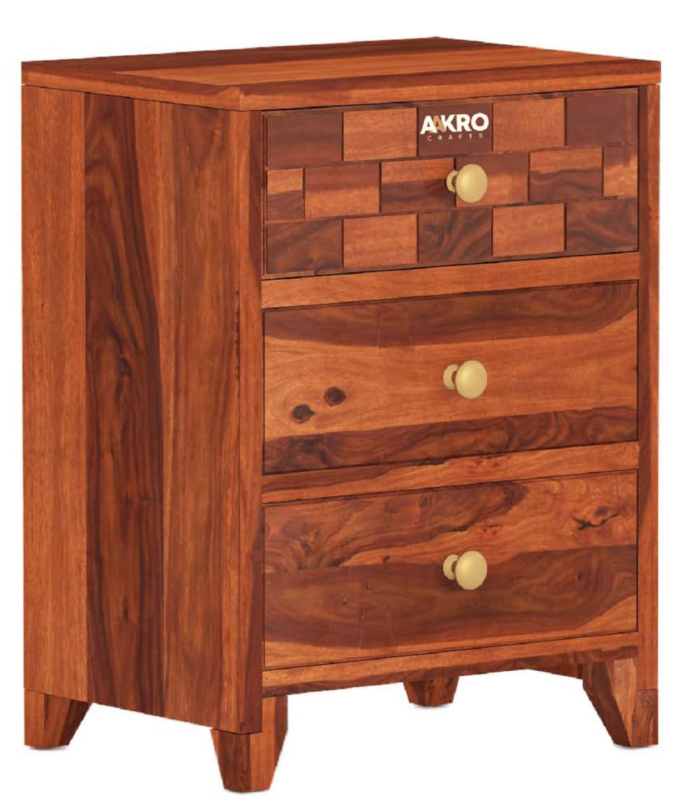 Tuscan Sheesham Wood Bedside Table with 3 Drawer Storage - Brick Design