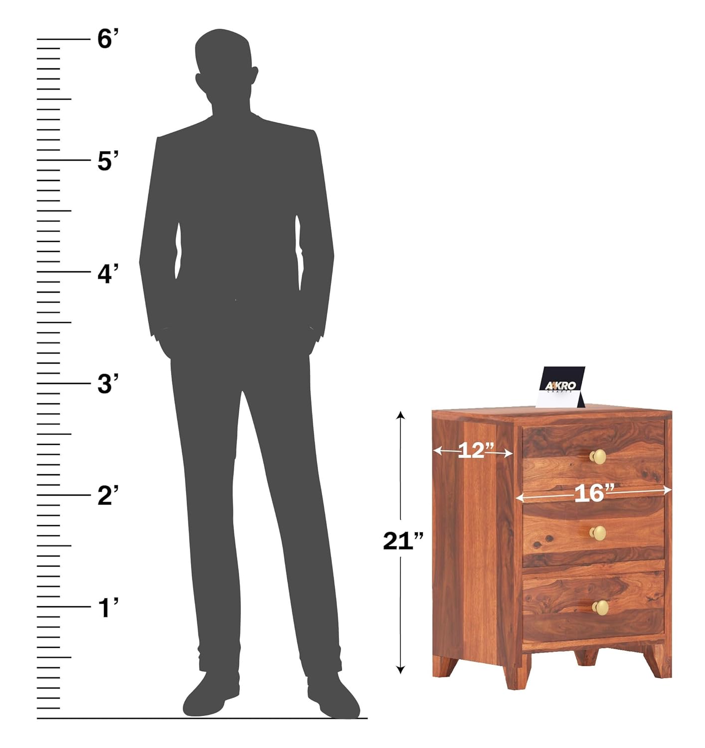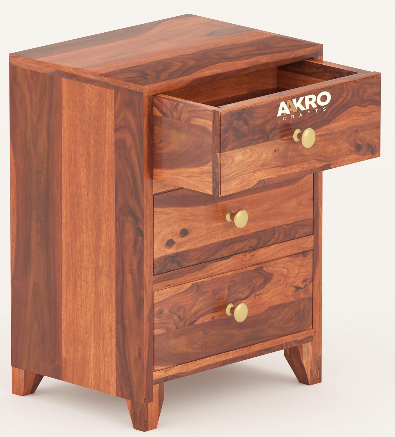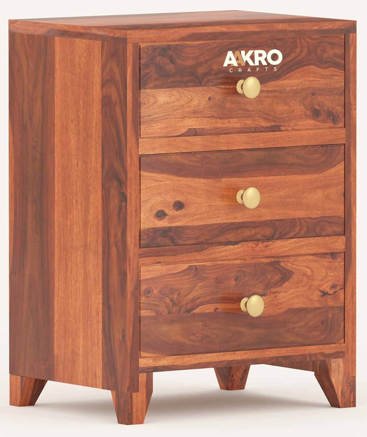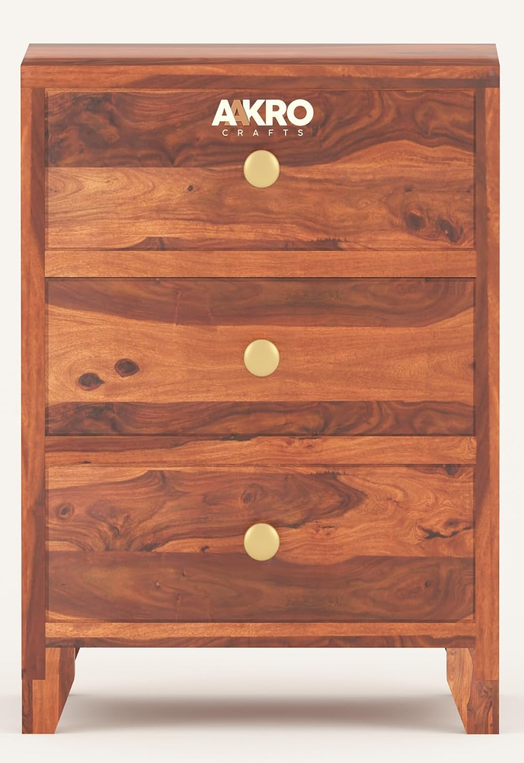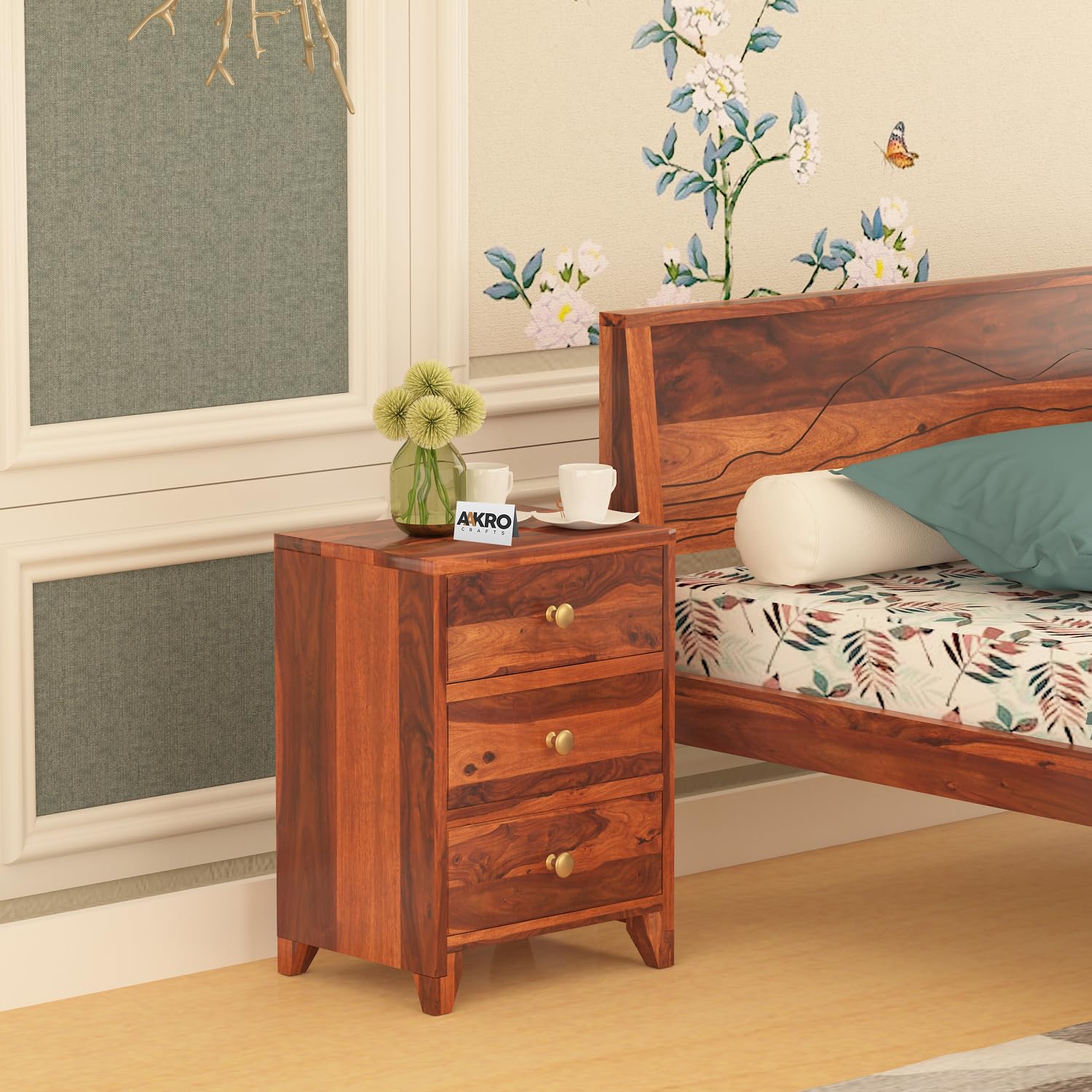 Noah Sheesham Wood Bedside Table with 3 Drawer Storage - Grooved Design