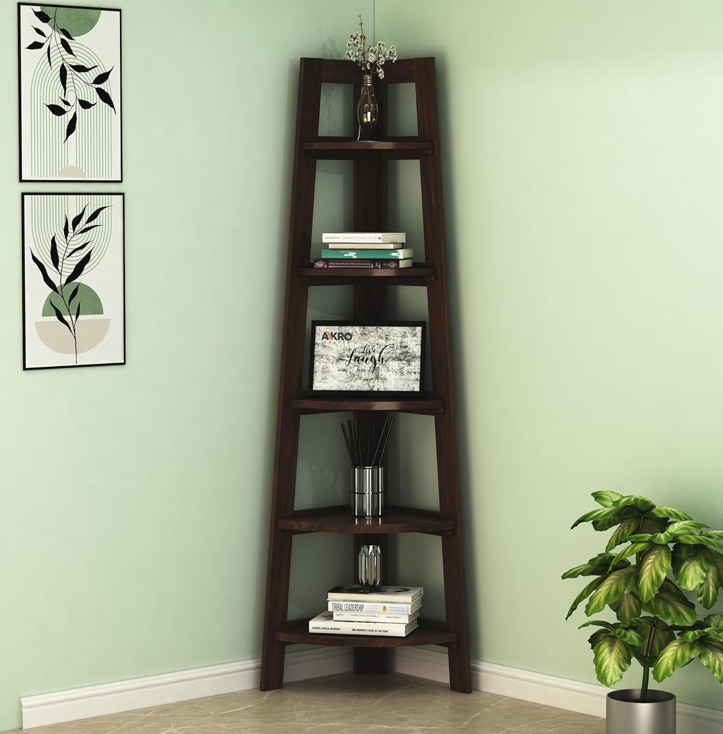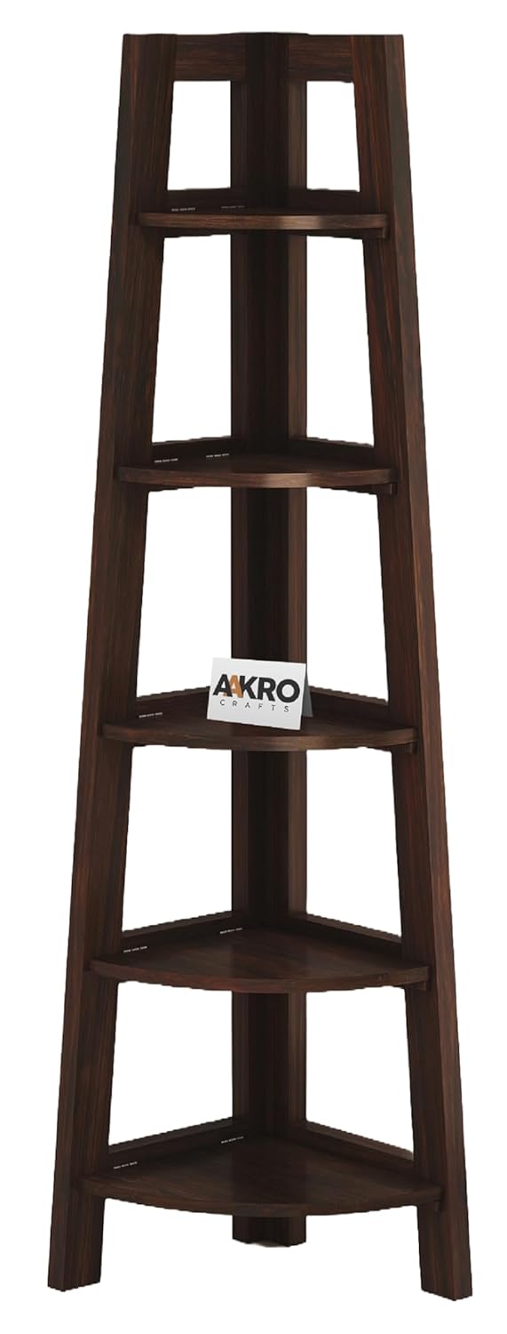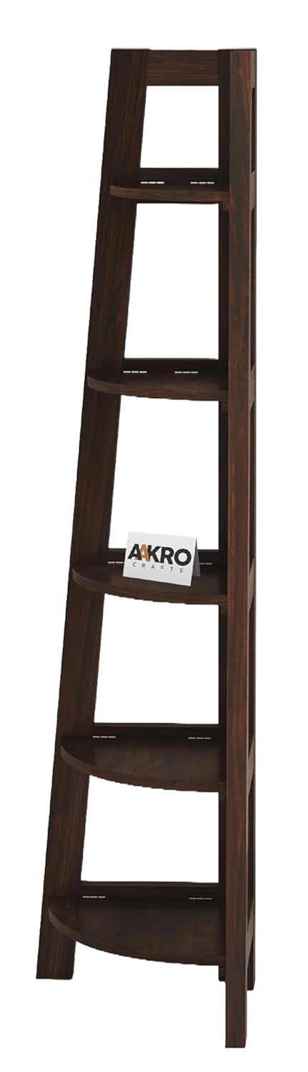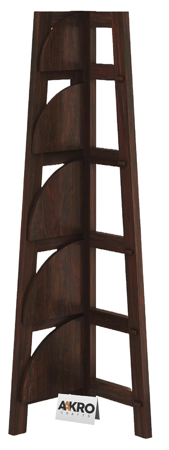 Elena Sheesham Wood 5 Tier Corner Bookshelf / Bookcase Display Unit