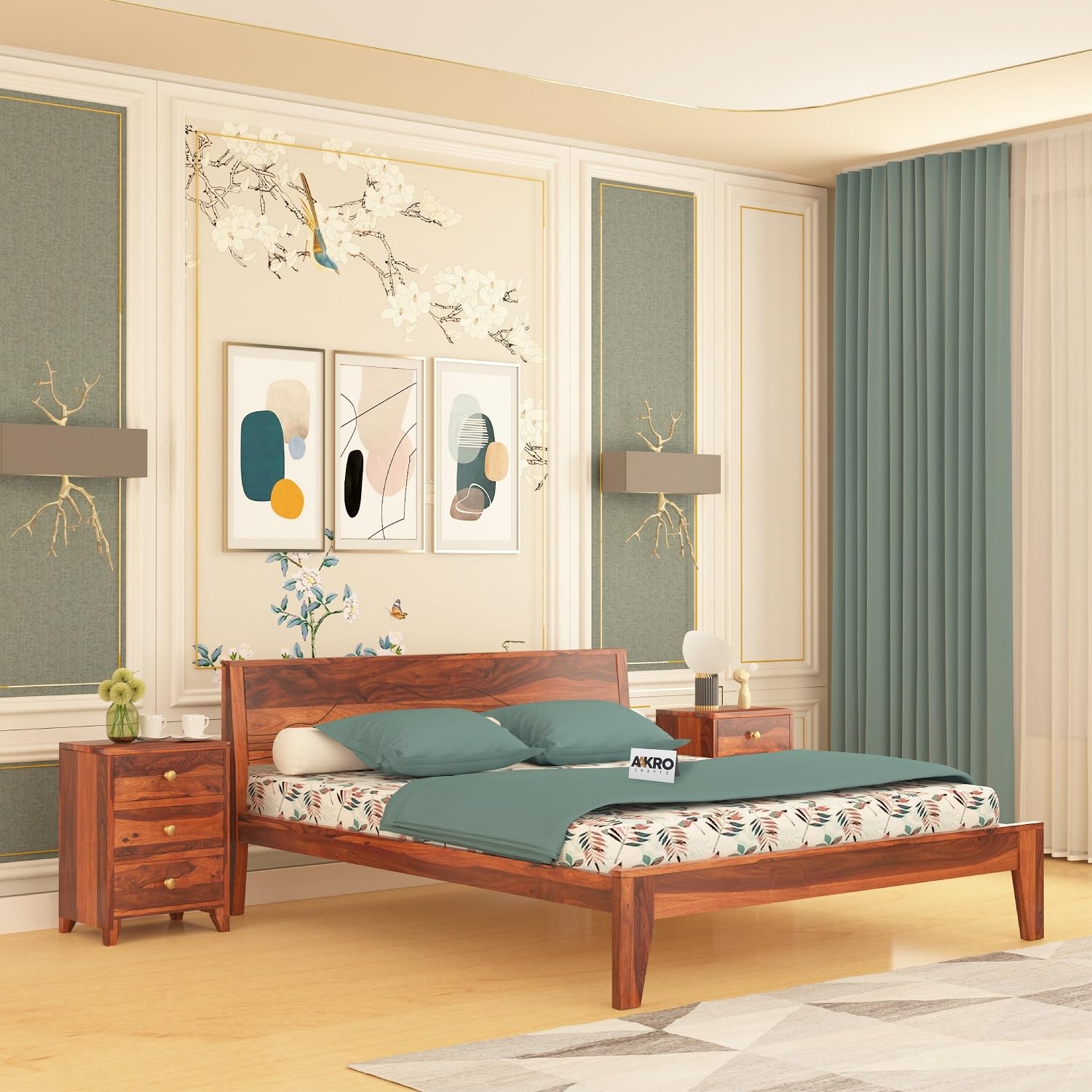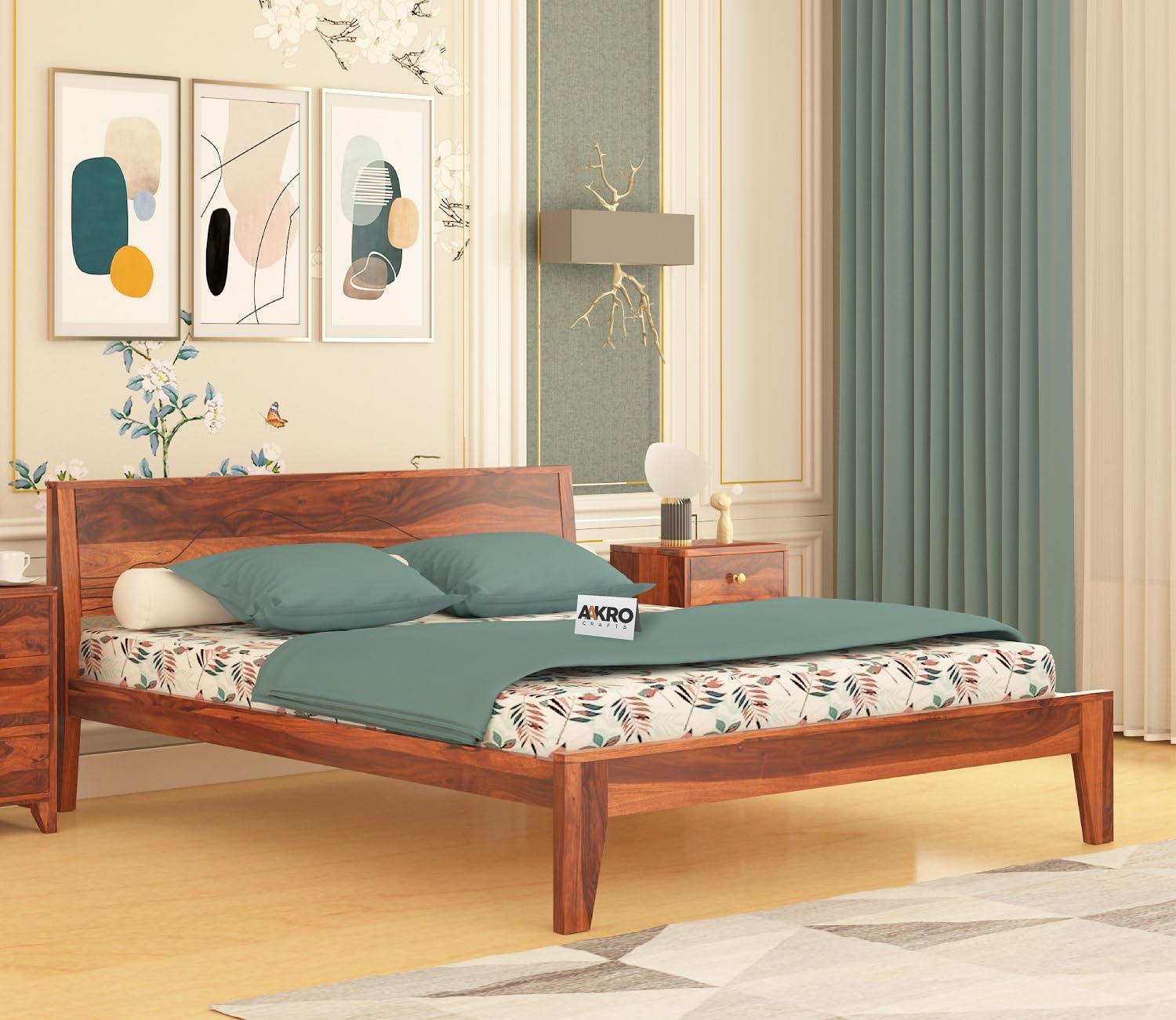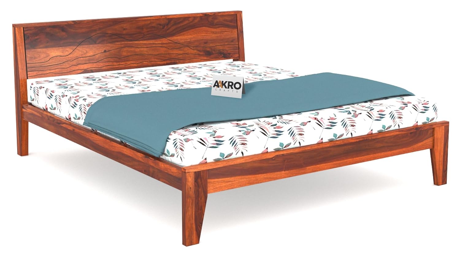 AAKROCRAFTS This Wooden Bed without storage is made up of solid sheesham wood and ingenious design of double bed in good finish will refresh your interiors with its plush look and compliments any existing décor. The double bed for bedroom can also be said as palang double bed wooden char pai bed. Elegant and vintage design of the wooden bed makes it well match with many home decoration. The bed furniture for bedroom looks very ravishing and admiring.