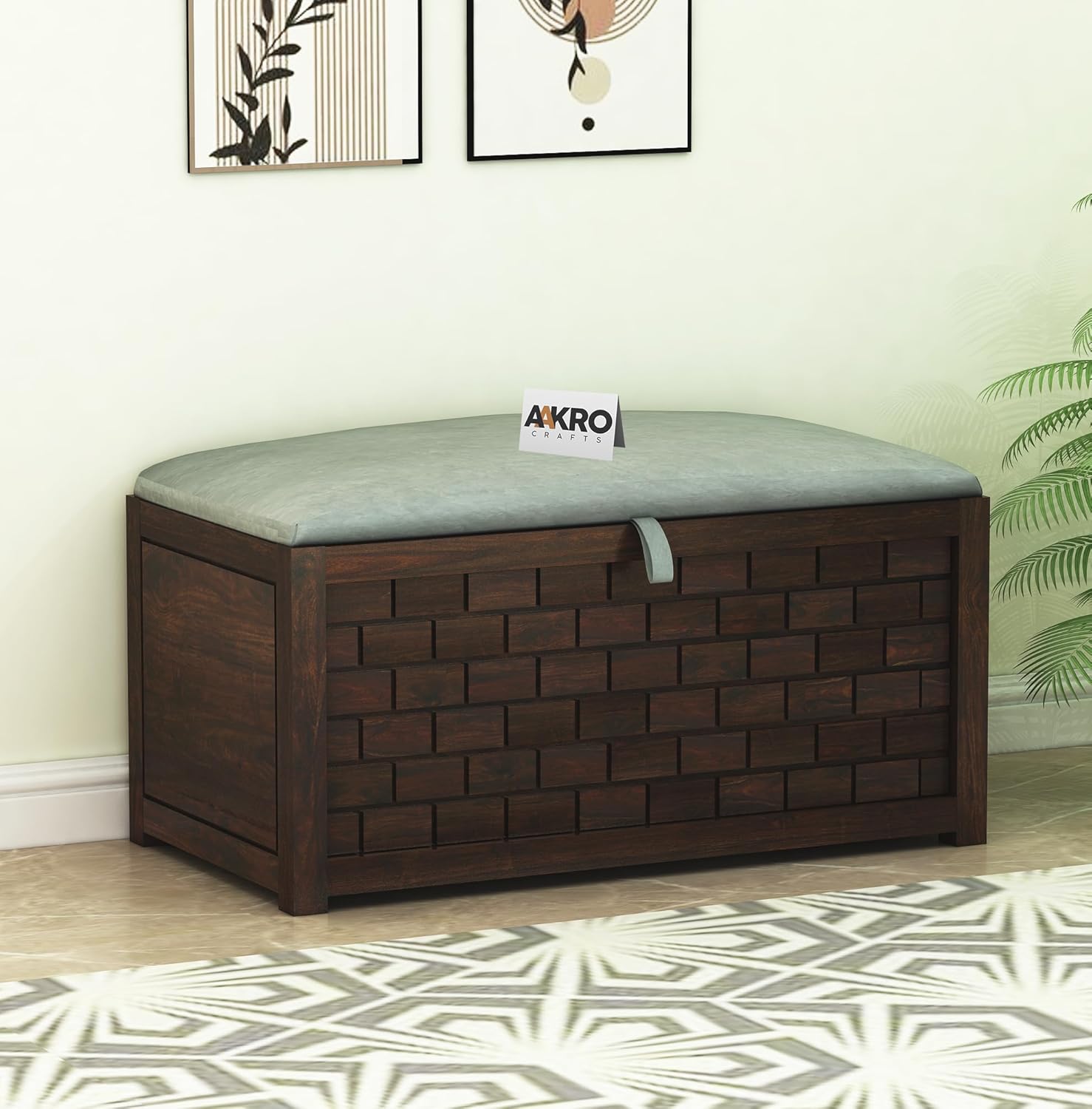 Ray Sheesham Wood Storage Bench - 1 Year Warranty - Walnut Finish