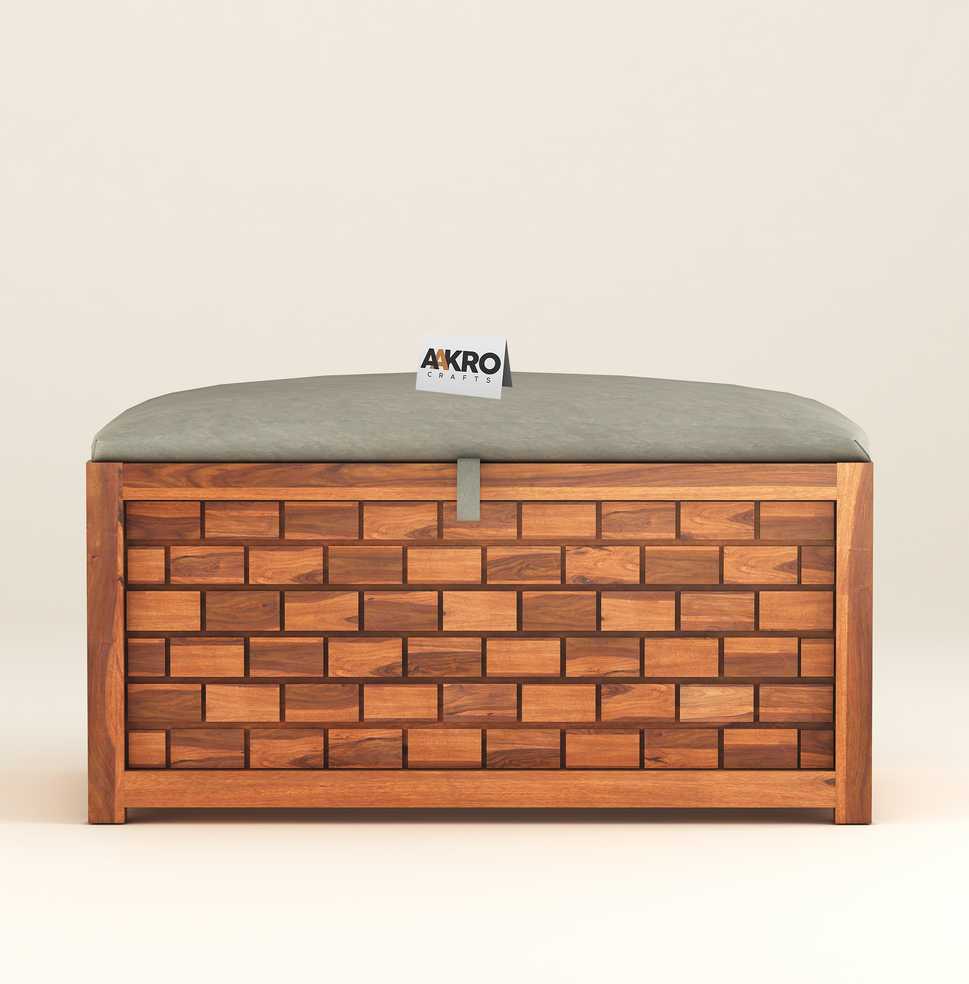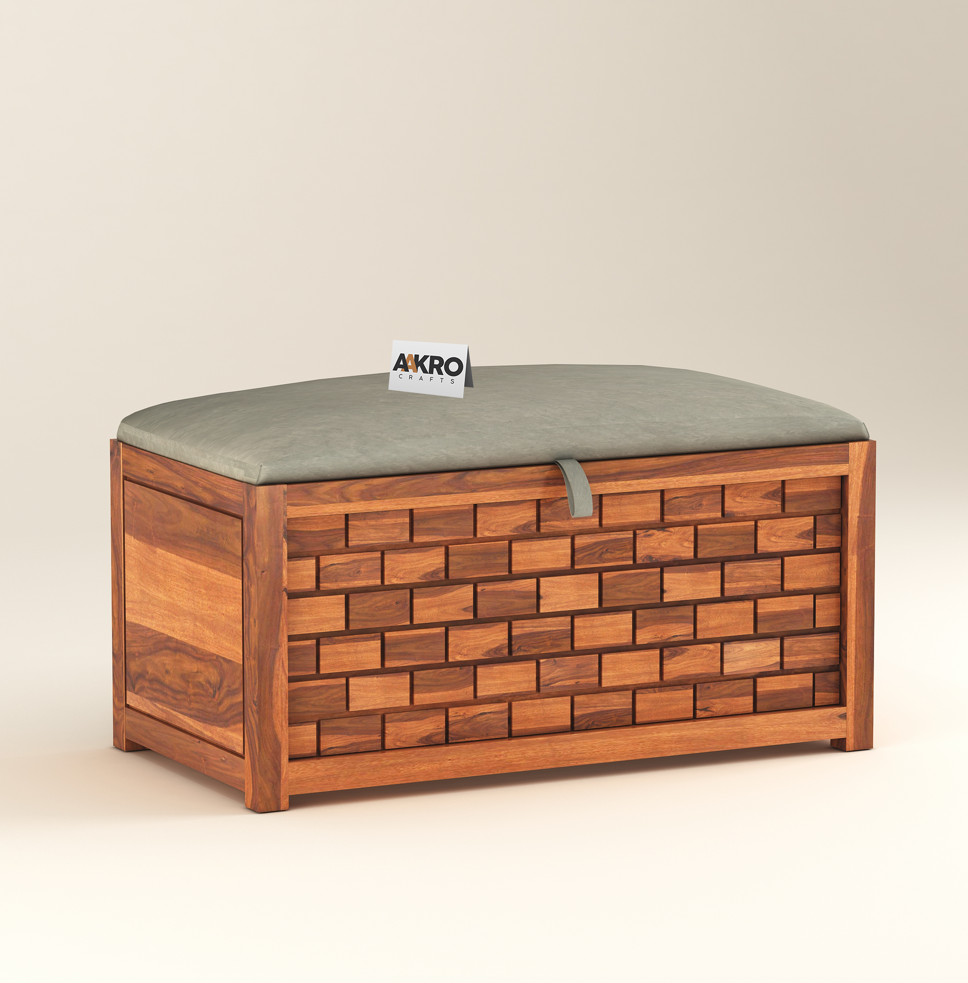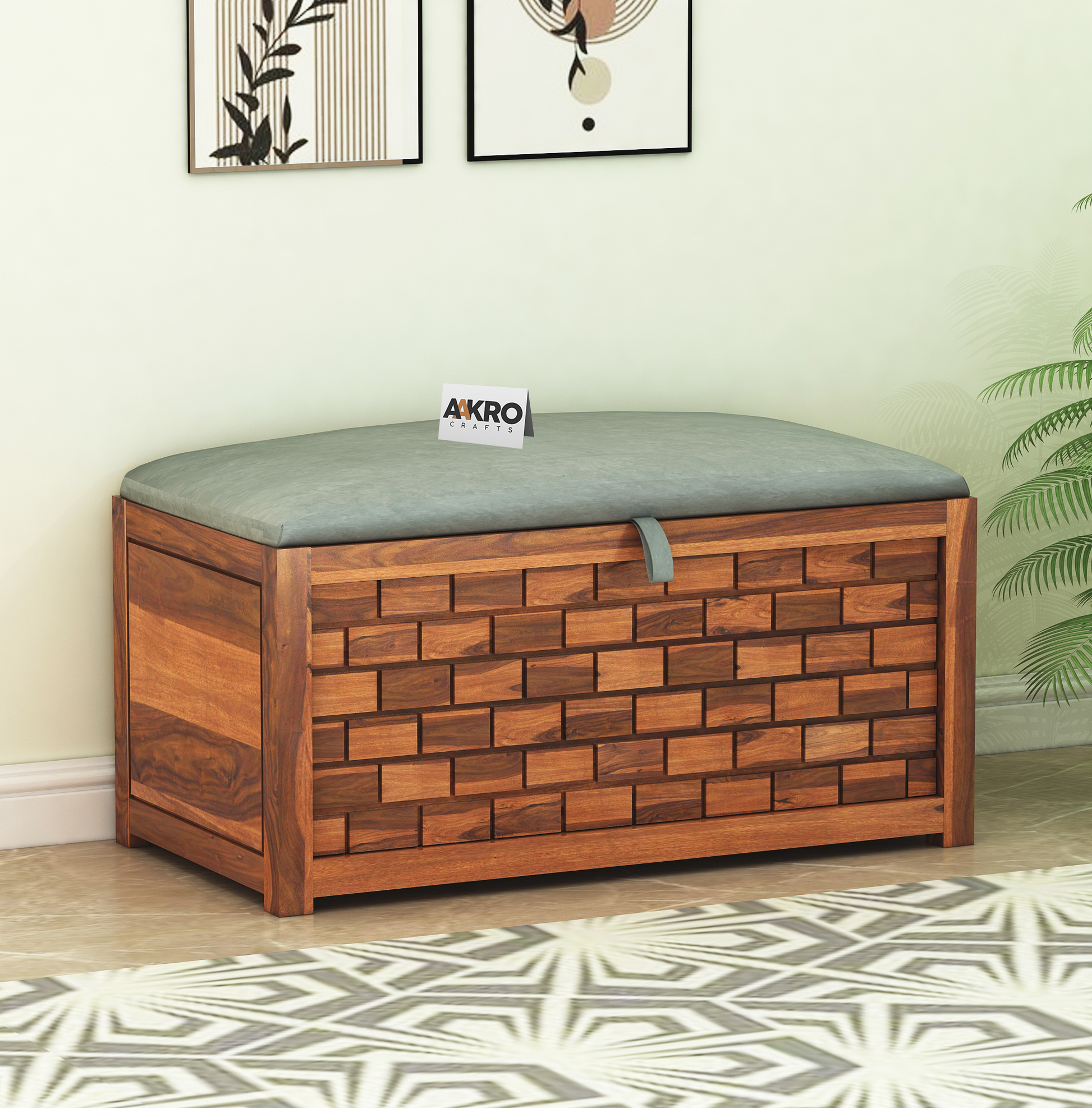 Ray Sheesham Wood Storage Bench - 1 Year Warranty - Honey Finsh
