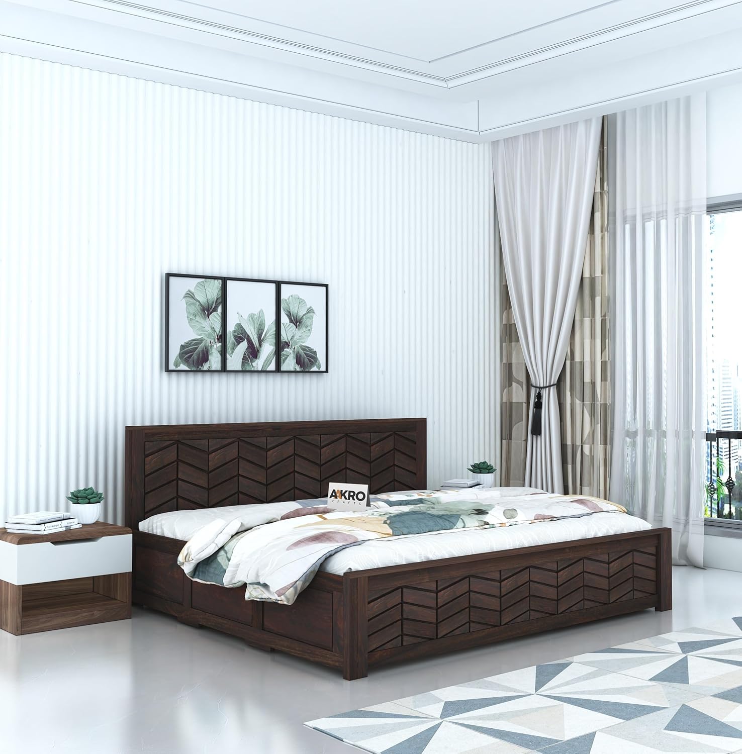 AAKROCRAFTS This Wooden RB Bed with box storage is made up of Solid sheesham wood will refresh your interiors with its plush look and compliments any existing décor. Box storage makes it perfect to store your valuables perfectly. The double bed for bedroom can also be said as palang double bed wooden char pai bed. Elegant and vintage design of the wooden bed makes it well match with many home decoration. The RB bed Furniture for Bedroom looks very ravishing and admiring.