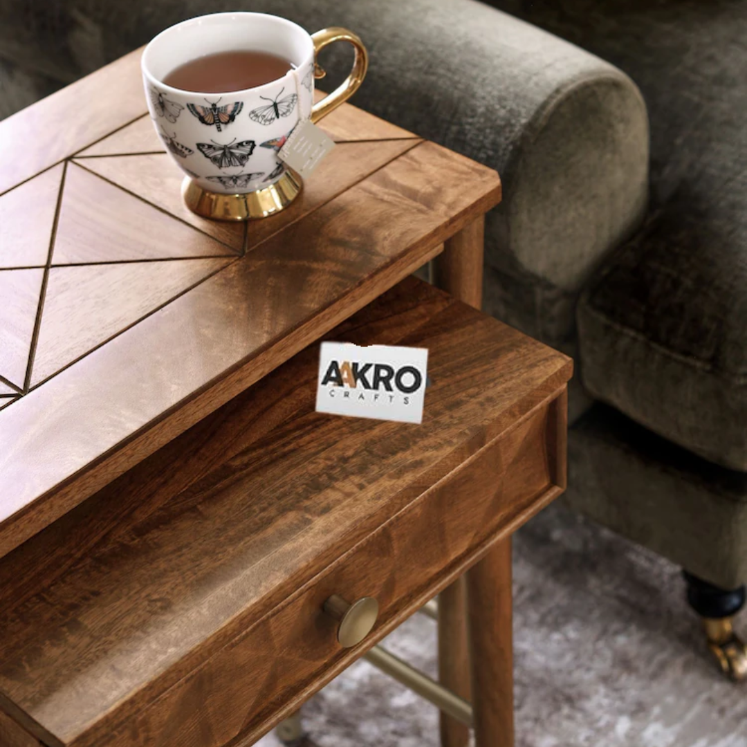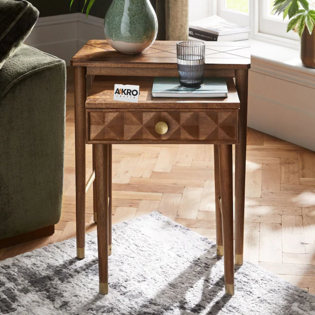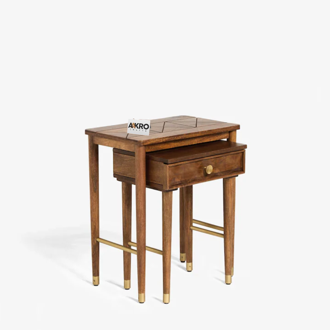 Enhance your living room, bedroom, or study with the Trevvi Solid Wood Storage Nest of 2 Tables from Aakrocrafts—where innovative storage meets classic design for effortless, adaptable style.