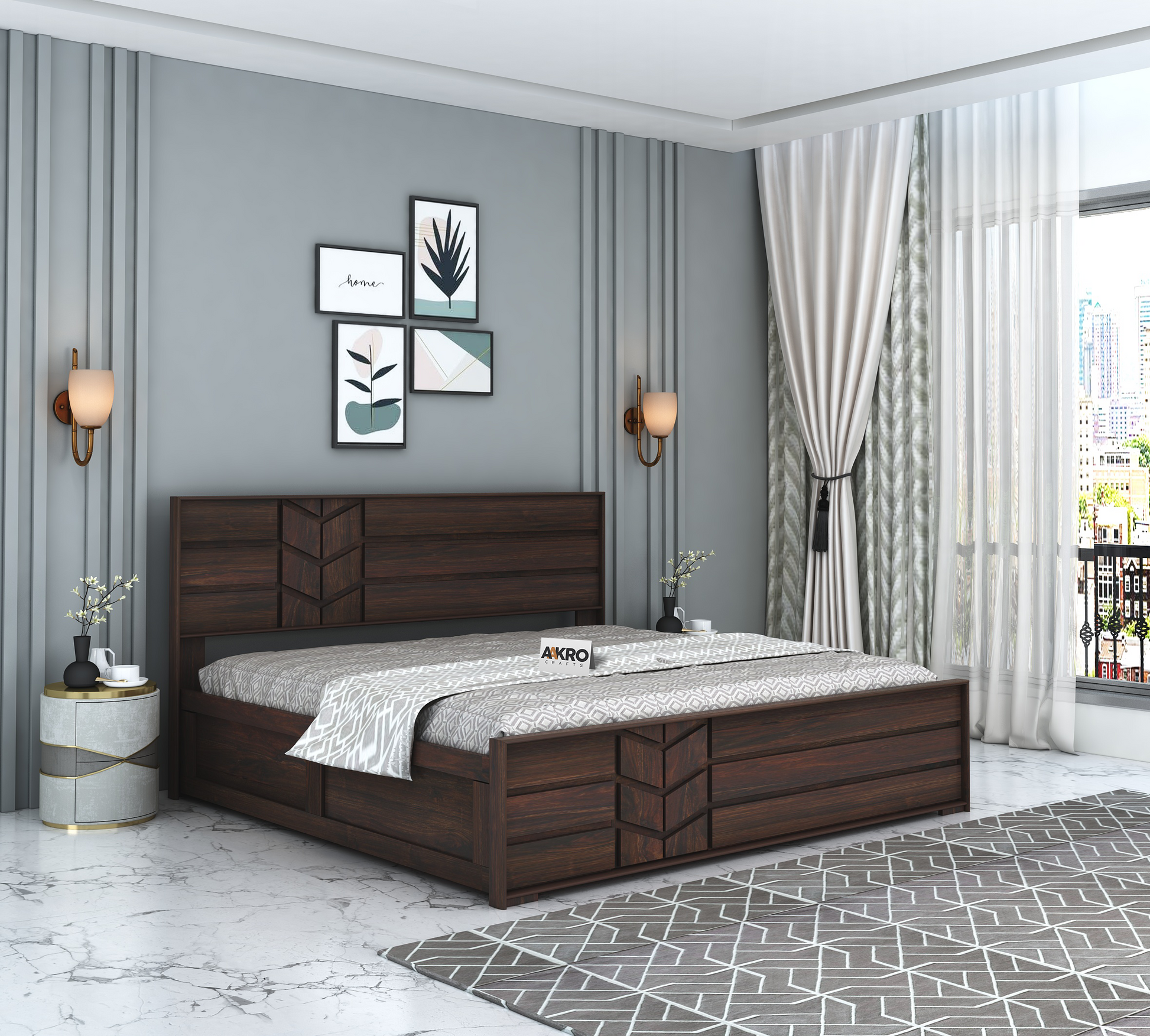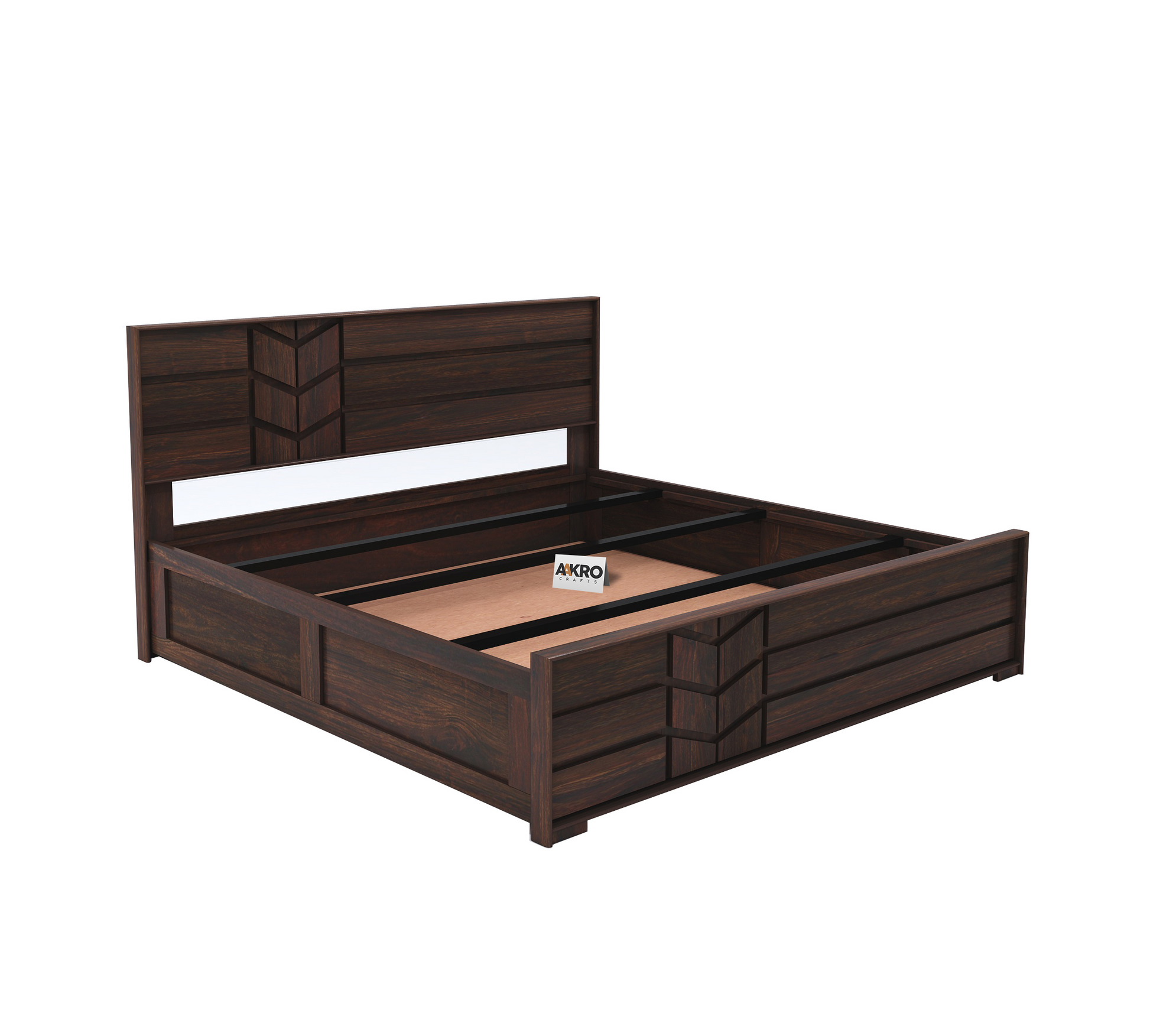 Aakrocrafts Double Bed, crafted from solid Sheesham wood, will instantly enhance your bedroom with its sophisticated and elegant design. This bed is a perfect blend of style and functionality, designed to complement a variety of home decors. Its classic yet modern look adds a touch of luxury and warmth to any space, making it a timeless piece that fits seamlessly with both contemporary and traditional interiors. This solid wood bed features a spacious box storage design, providing ample room to neatly store your valuables, bedding, and other essentials, helping you keep your bedroom organized and clutter-free. The double frame of this box storage bed ensures comfort and support for a restful night's sleep. It’s also referred to as a palang, double bed, char pai, or cot, making it a versatile addition to your home. Perfect for the bedroom or even the living room, the Aakrocrafts Double Bed is an attractive and functional piece that adds an inviting charm to any room.