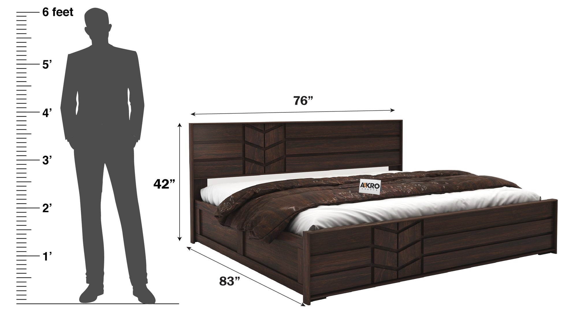 For King Size: (LxWxH) 83x76x42 Inch, Queen Size: 83x65x42 Inch