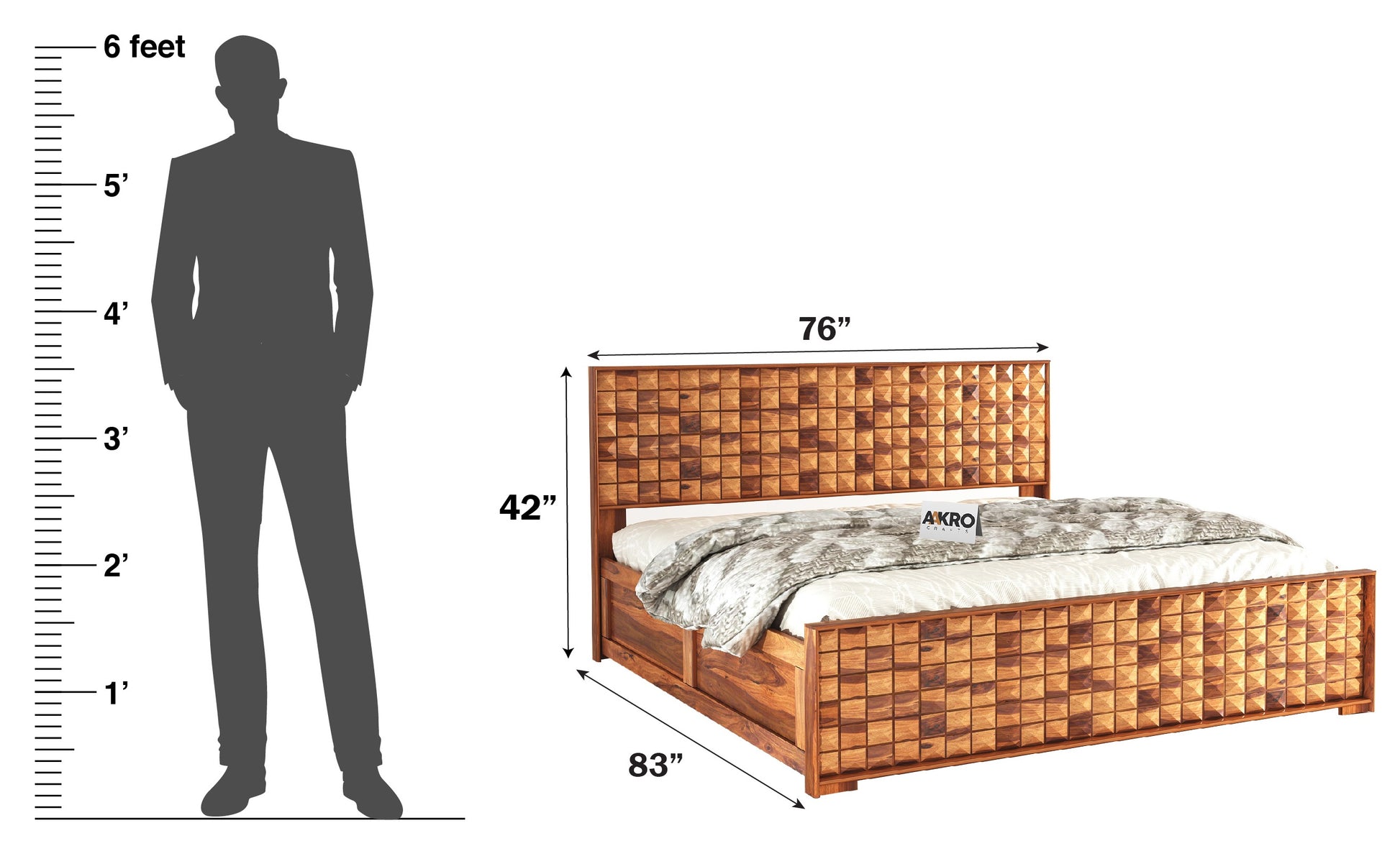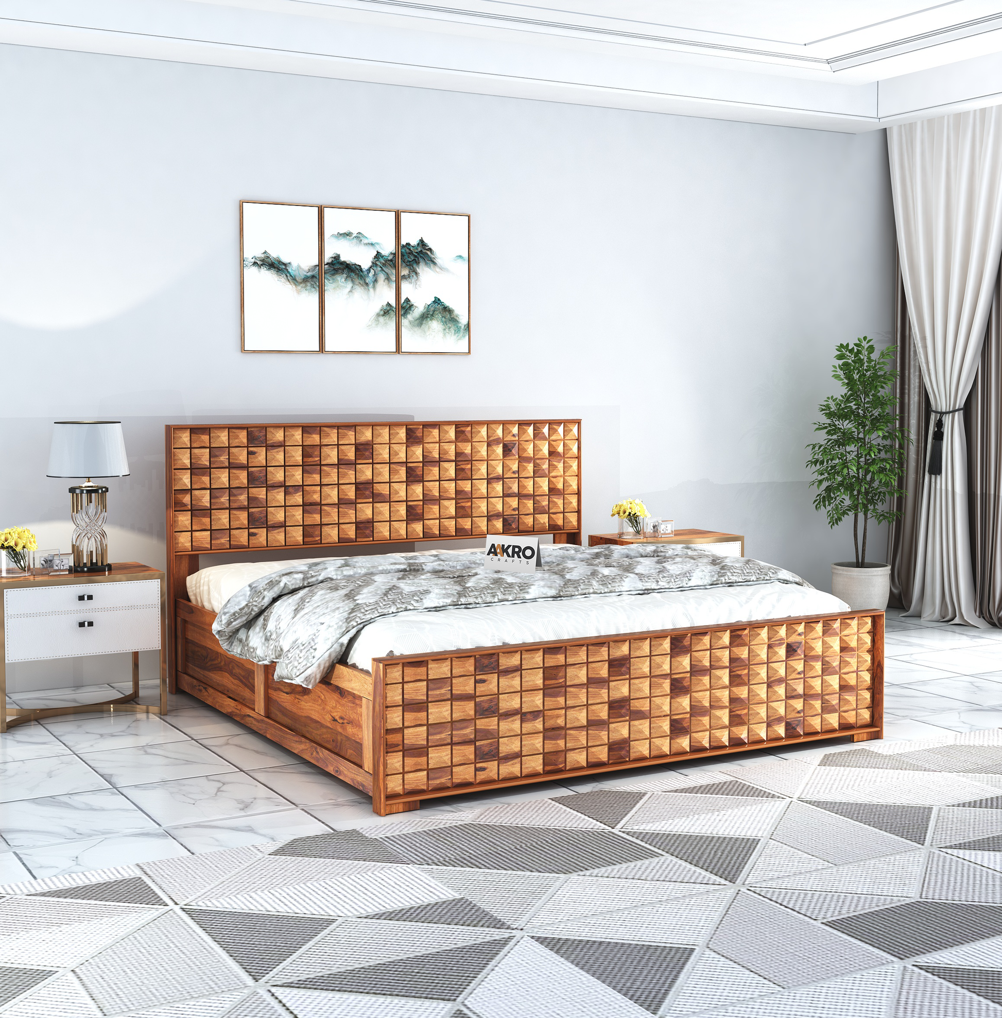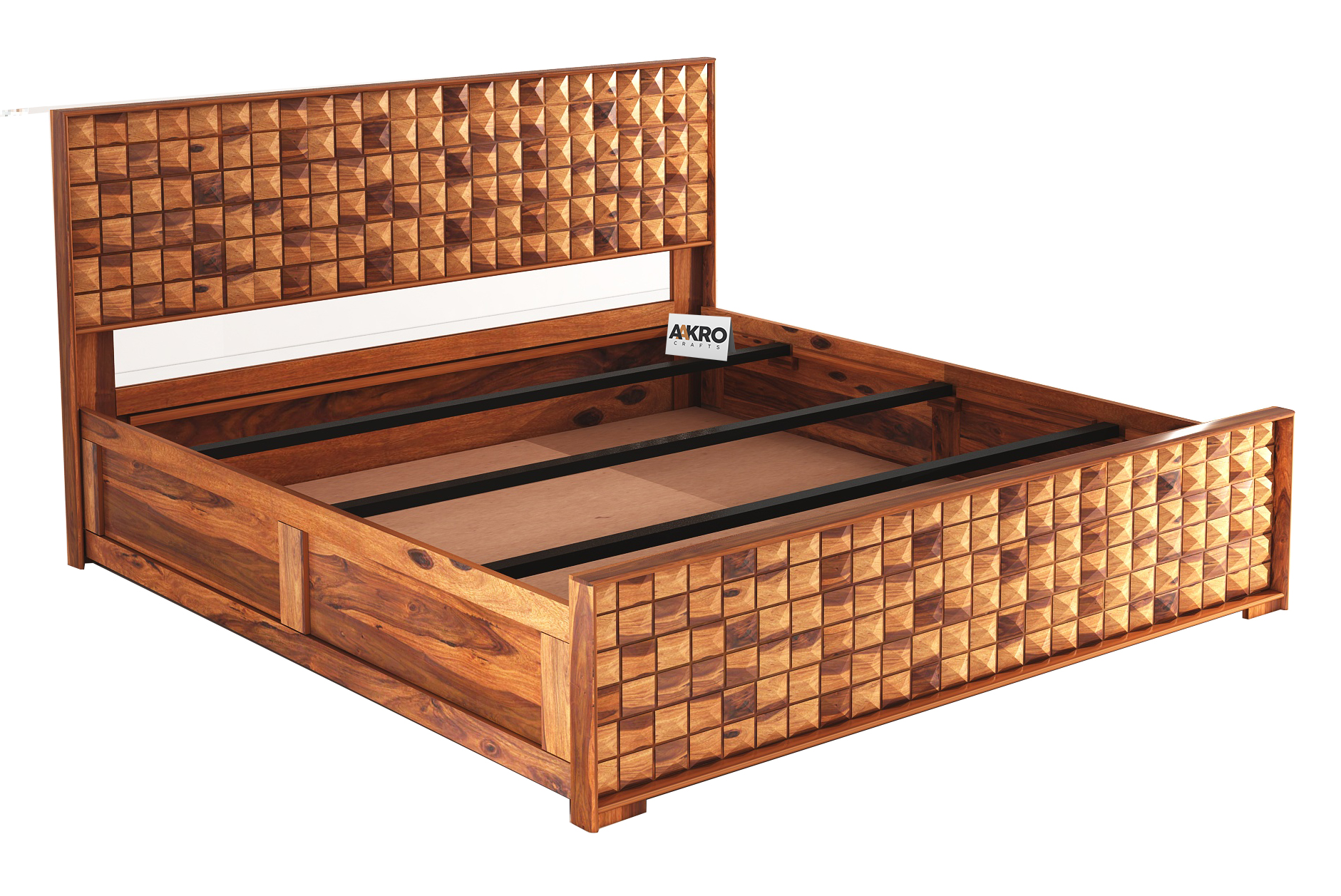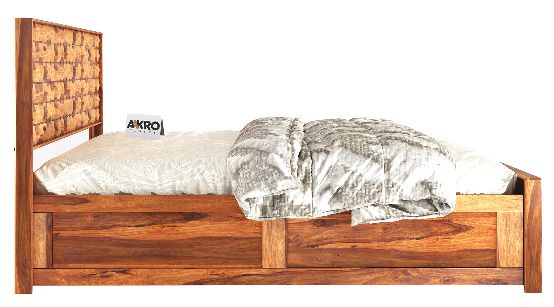Parker Daimond Sheesham Wood Bed with Box Storage, Honey Finish - 1 Year Warranty